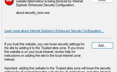 Wenn man häufiger mit GPOs im GPO-Editor arbeitet, ist einem garantiert schon mal diese Fehlermeldung erschienen: Wenn bei [Add…] eine weitere Warnmeldung erscheint: dann vorübergehend die GPO “MSFT Internet Explorer 11 – Computer” deaktivieren...