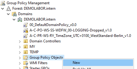 Für den zweiten Punkt werden folgende drei GPOs angelegt: