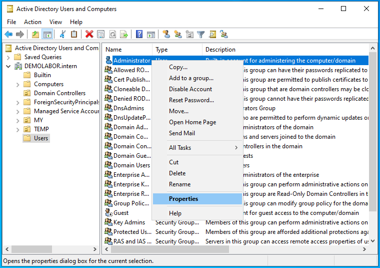 - Im Tool „AD Users and Computers“ in die AD-Gruppe „Protected Users“ gehen