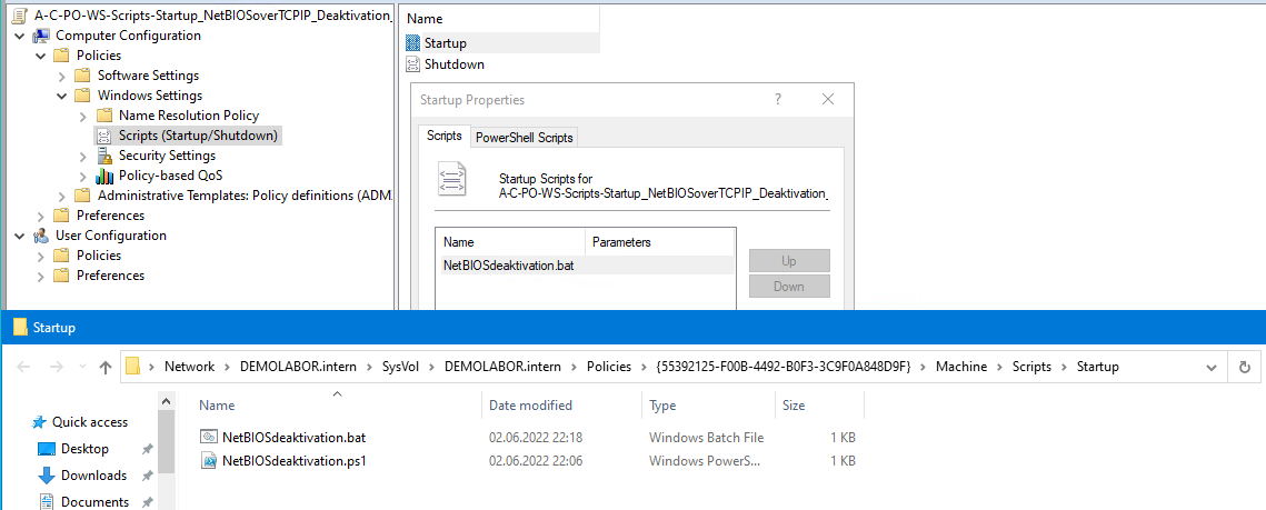 %SystemRoot%\system32\WindowsPowerShell\v1.0\powershell.exe -ExecutionPolicy ByPass -file "\\DEMOLABOR.intern\SysVol\DEMOLABOR.intern\Policies\{55392125-F00B-4492-B0F3-3C9F0A848D9F}\Machine\Scripts\Startup\NetBIOSdeaktivation.ps1"