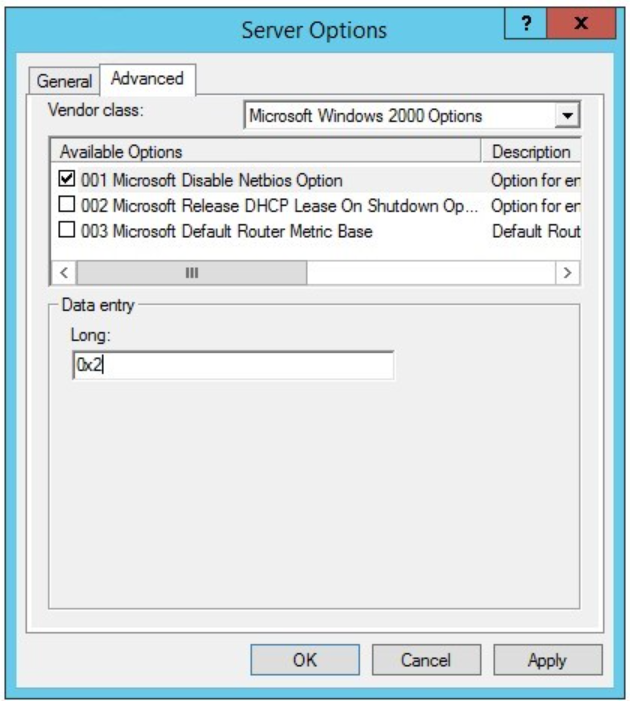 Das Flag über den DHCP-Server ist in den Server-Optionen im Reiter „Advanced.