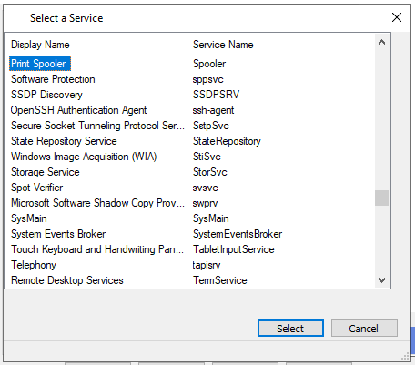 - Service name: Spooler
