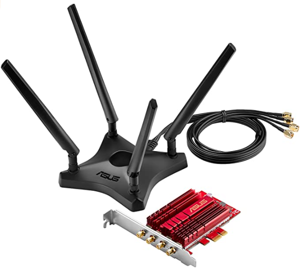 In meinem Fall ist es jedoch so, dass es sich ja nur ein LABOR-System, also mein heimisches Testsystem, handelt. Hier bin ich mit der Anbindung per WLAN vollkommen zufrieden. Wie in “LABOR 3” geschrieben, ist dort die “Asus PCE-AC88” (gibt’s Stand April 2021 sogar immer noch auf Amazon ) verbaut.