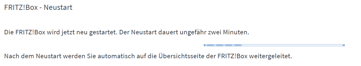 Es folgt nach Übernahme der Einstellungen noch ein Neustart.